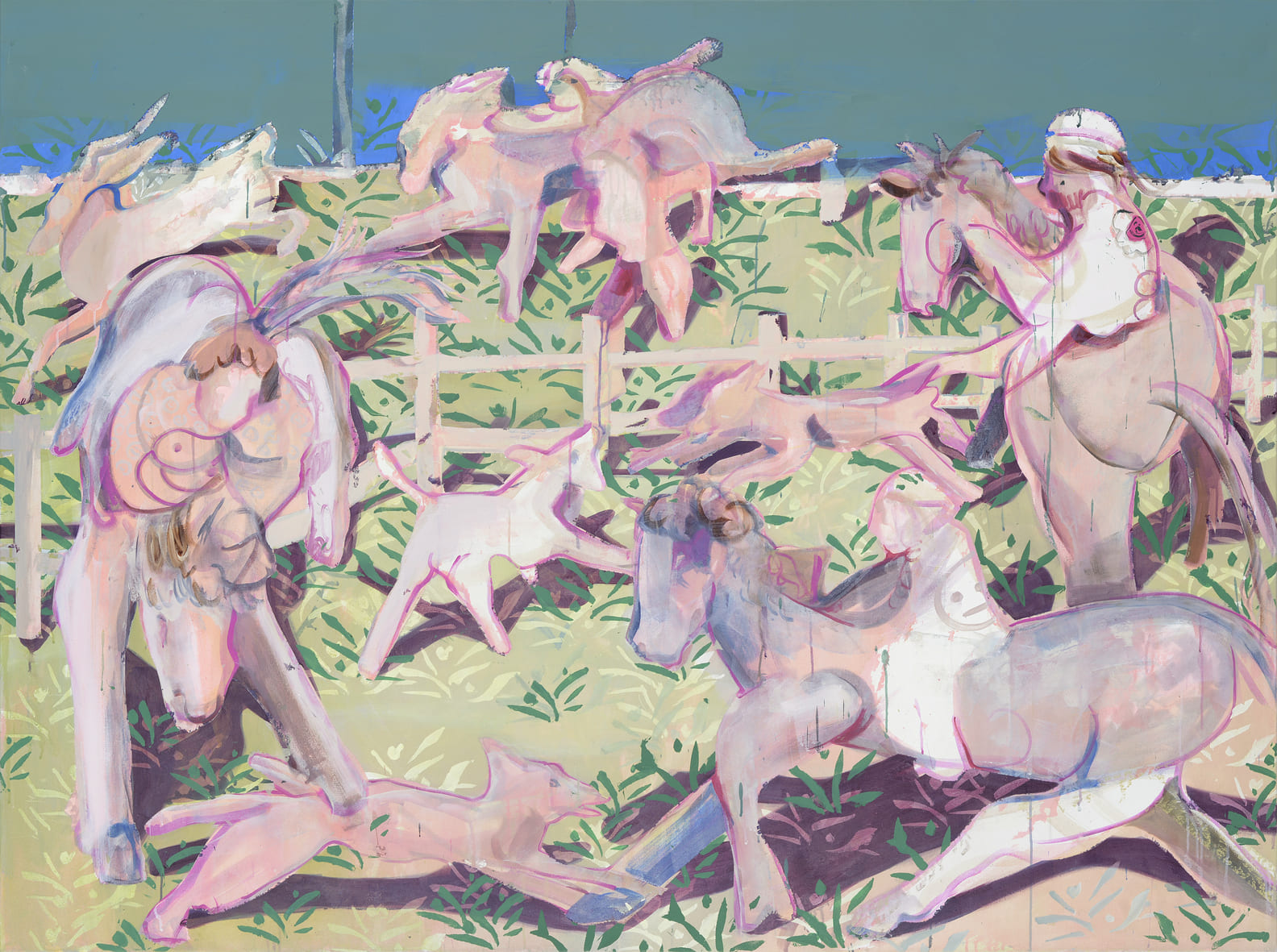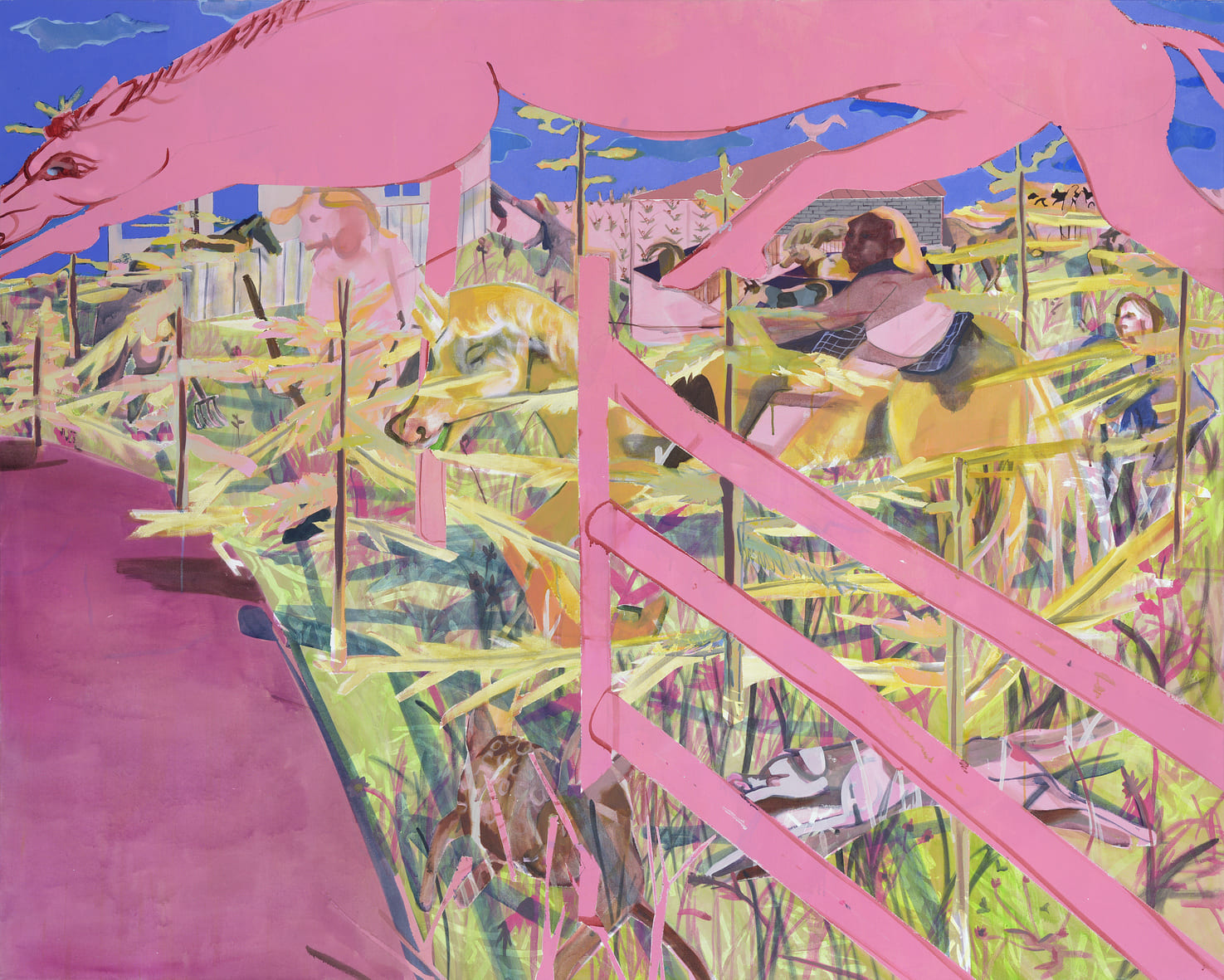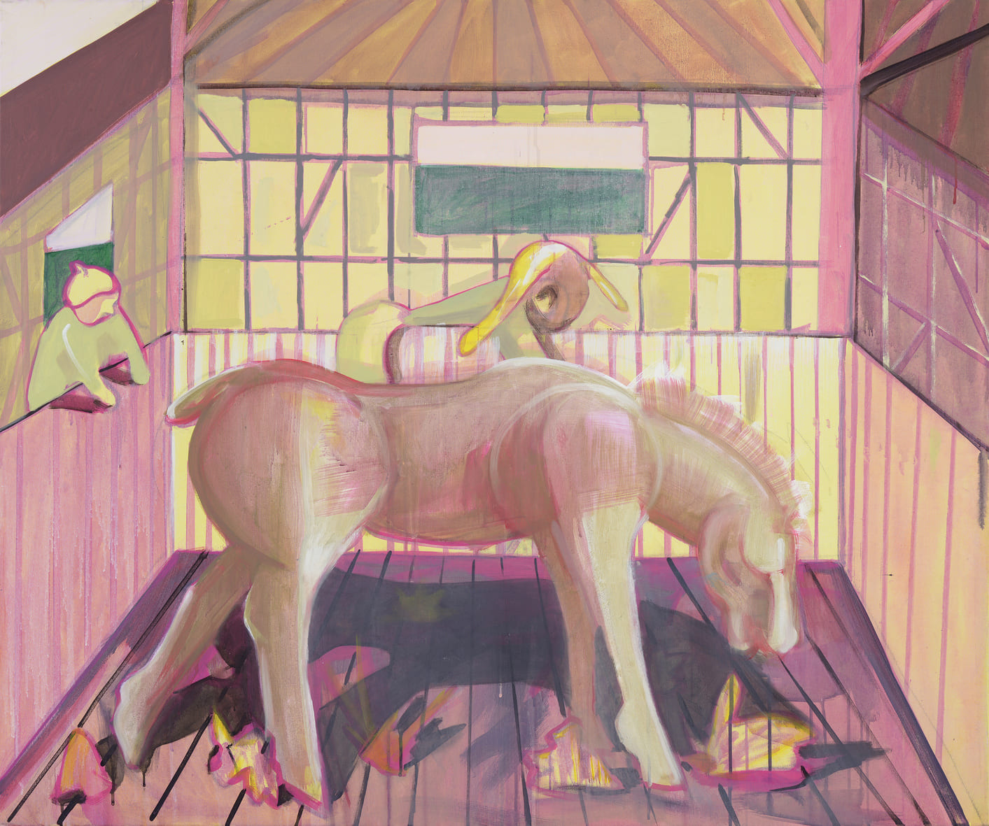 Ponyhof, 2019, 95x105, Acryl und Öl auf Leinwand