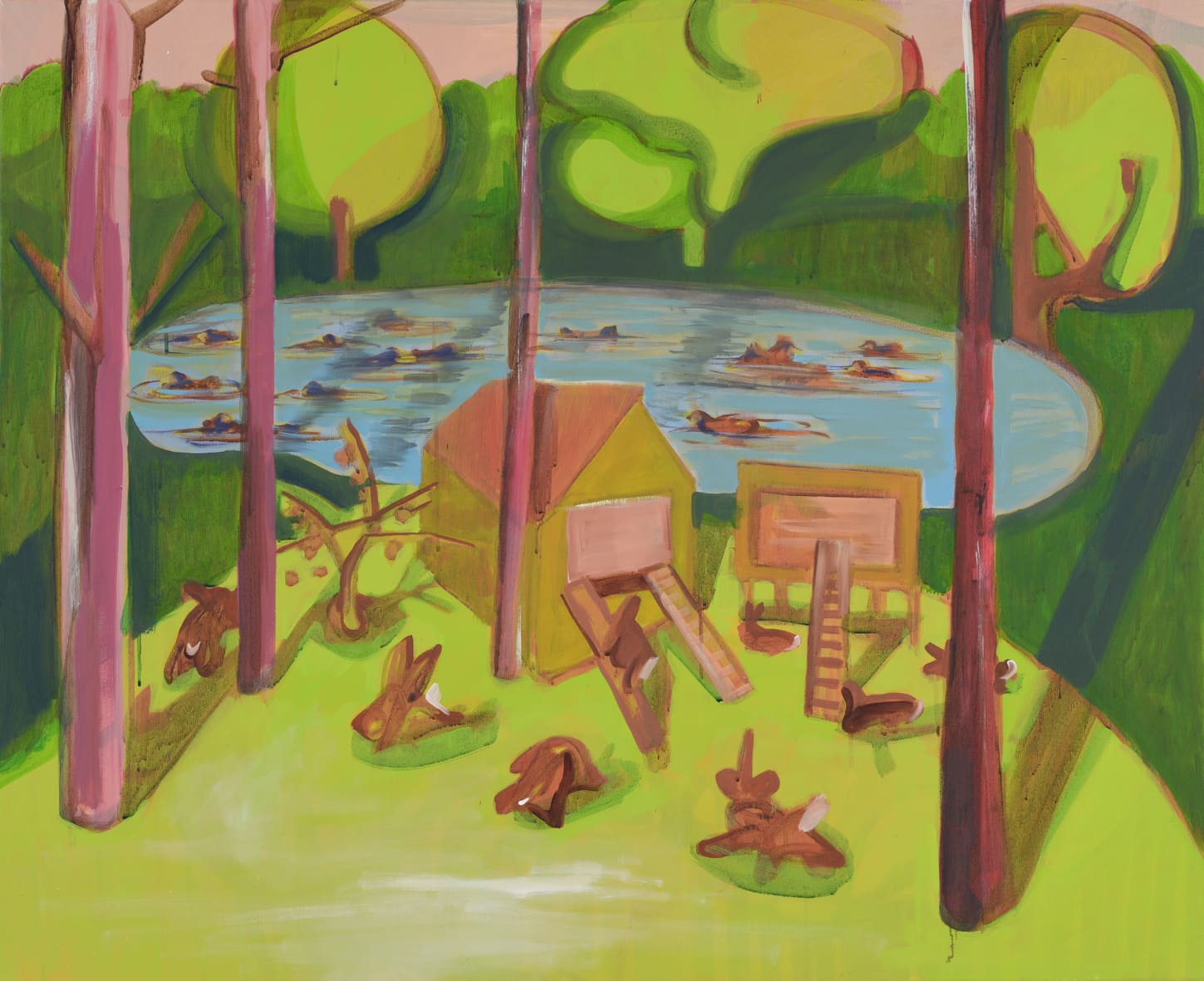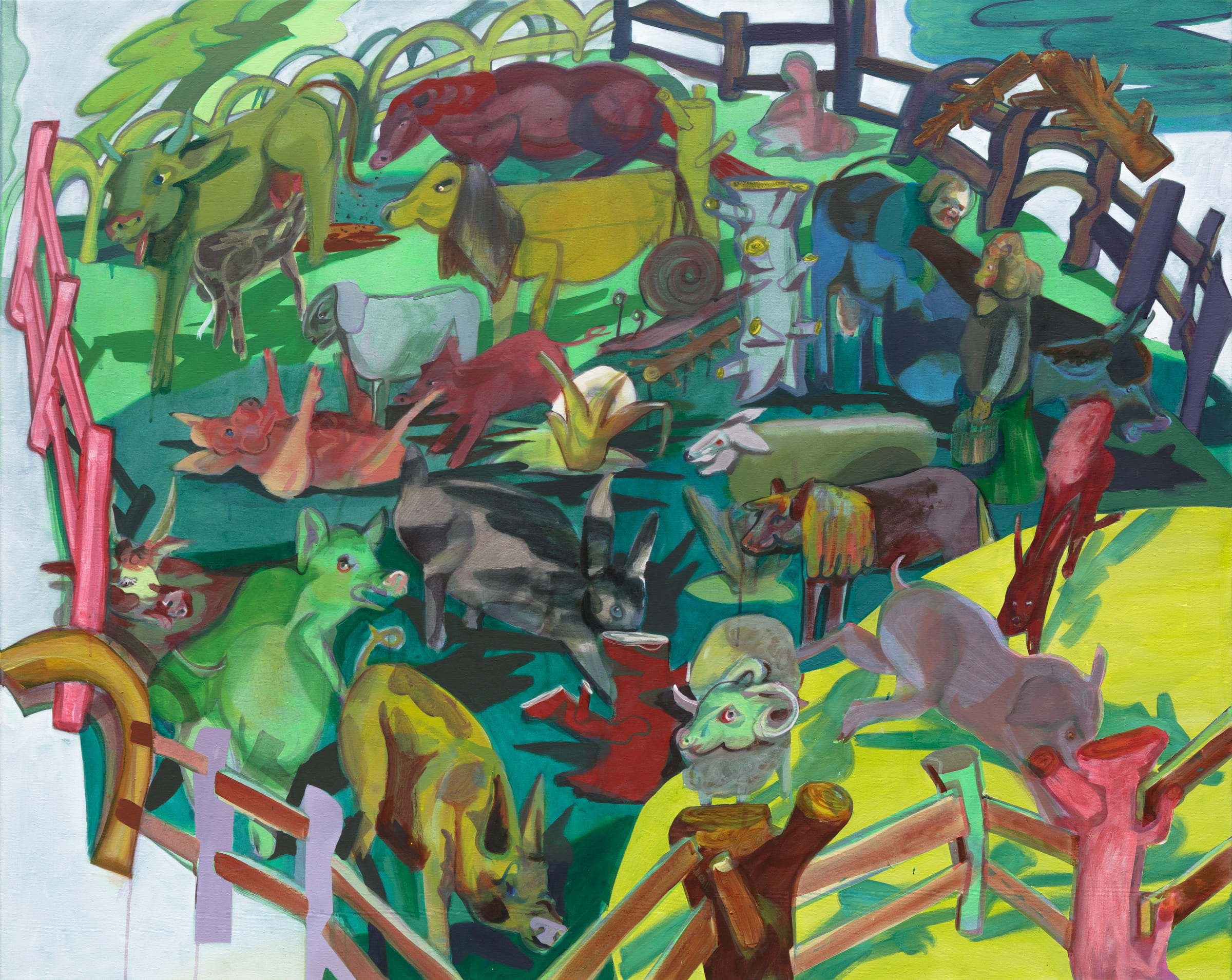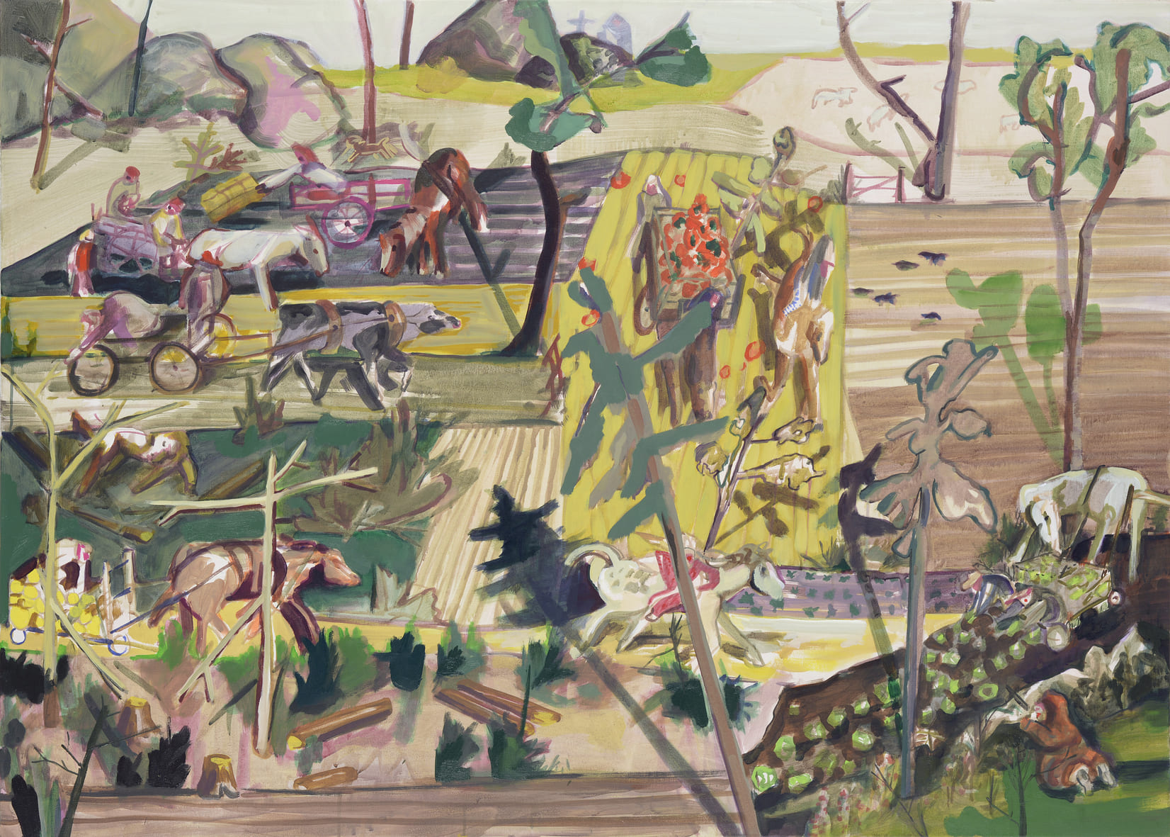 Ponyhof, 2019, 95x105, Acryl und Öl auf Leinwand