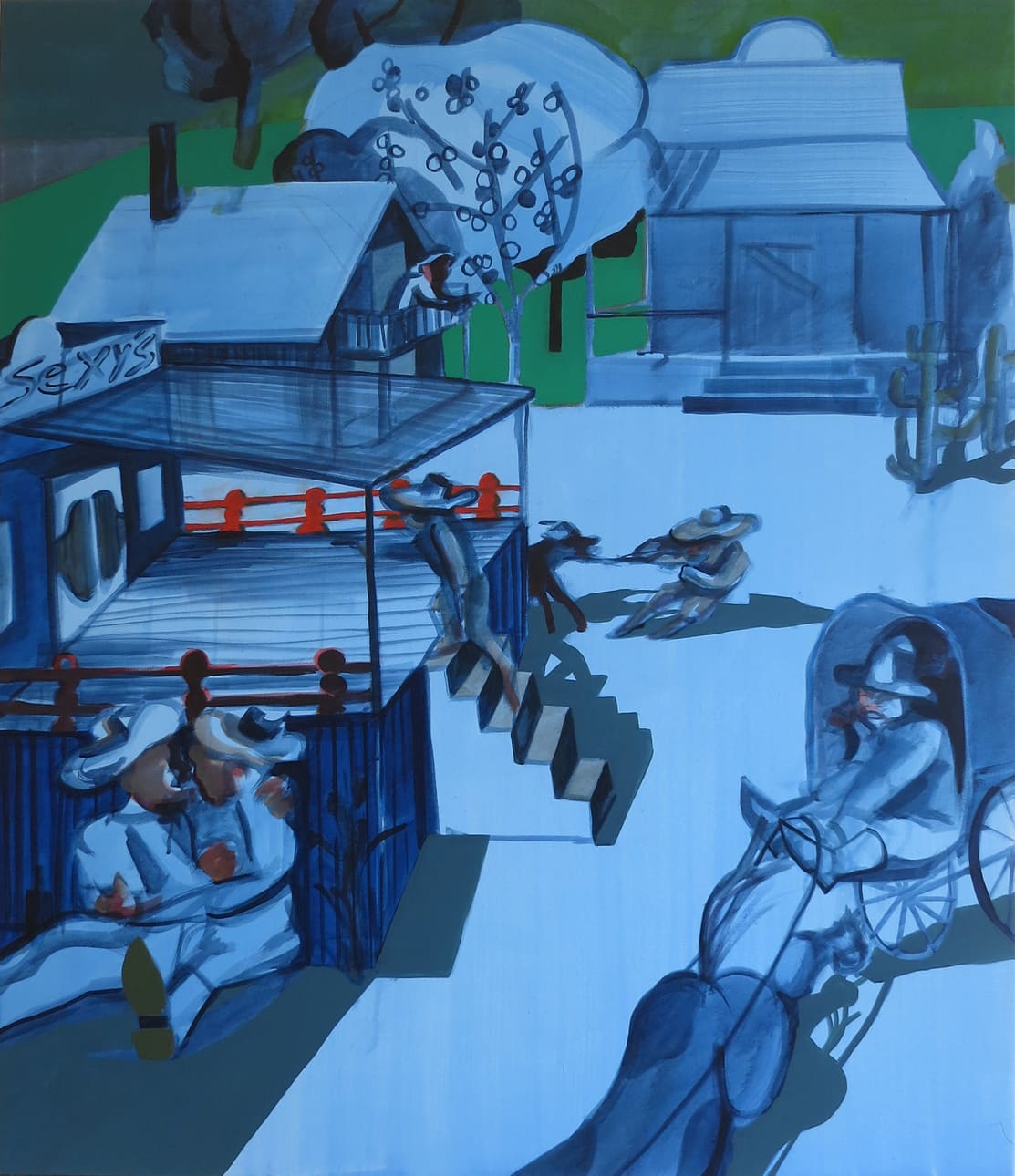 Dorf Vibes, 2020, 100x140, Acryl und Öl auf Leinwand
